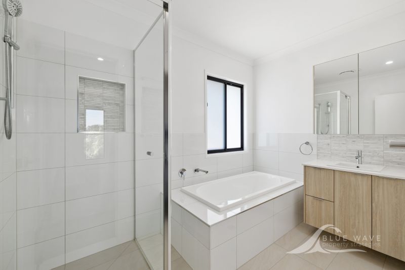 With two spacious living areas and a sleek stone-benched kitchen, this home is ideal for modern living. The large, fully fenced yard provides plenty of space for kids and pets, while the double lock-up garage adds extra convenience. Each bedroom is generously sized, with the master offering an ensuite and stylish shower niches.