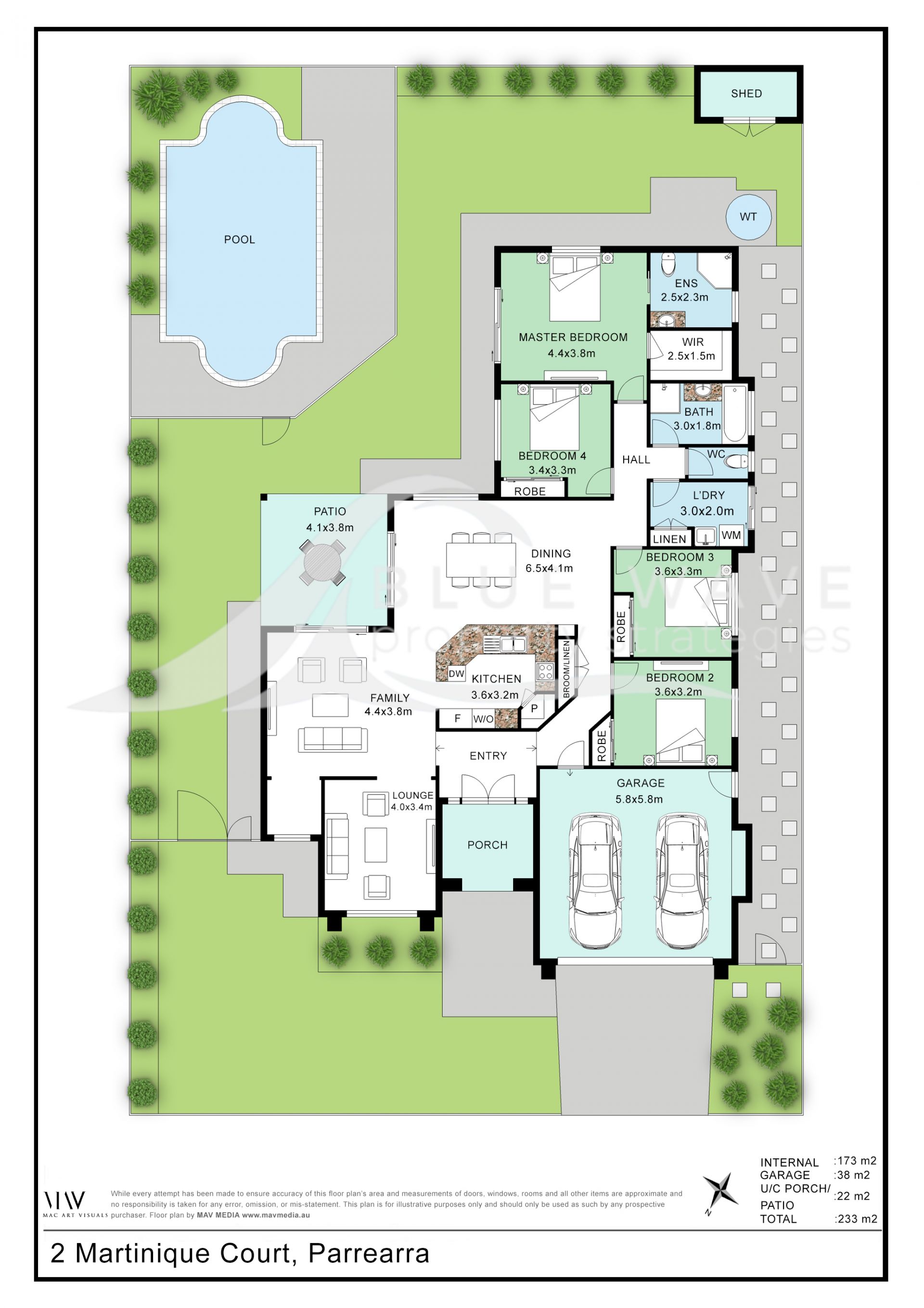 The home also boasts two expansive living areas, perfect for both entertaining and relaxed family living. The stunning in ground pool is a standout feature, surrounded by ample outdoor space for children to play in a secure, fully gated and fenced environment. The property includes a double lock-up garage and two beautifully appointed bathrooms, including a master ensuite and includes an external security system with Crimsafe screens and doors.
