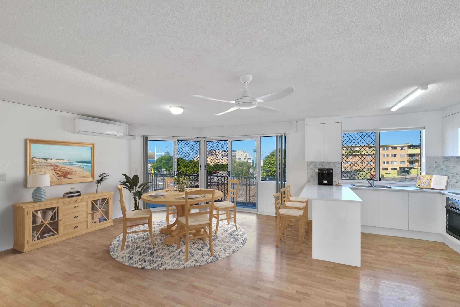 The apartment includes a secure parking space for one car and a tone of storage and access to well-maintained common areas, including landscaped gardens and a swimming pool. There is air conditioning and ceiling fans ensure year-round comfort.